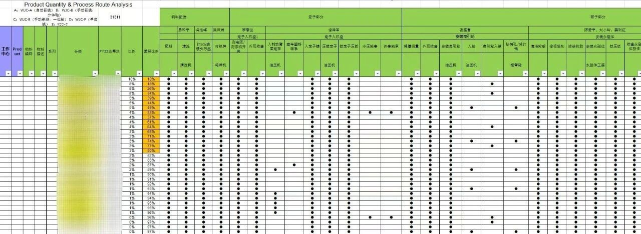 Trí anailís PQPR (Ródú Próiseas Cainníocht Táirge), d'aithin an fhoireann difríochtaí próisis i measc táirgí éagsúla, aicmiú na táirgí, agus shocraigh siad línte táirgeachta go réasúnach chun éifeachtacht táirgthe a fheabhsú.