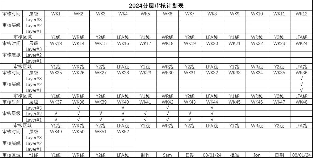 Ar an gcéad dul síos, ag smaoineamh ar thréimhse fhada an tionscnaimh feabhsúcháin agus an fonn chun éifeachtacht na bhfeabhsuithe a léiriú níos fearr, is gá na gníomhaíochtaí a phleanáil agus sceideal iniúchta próisis srathaithe a cheapadh. Cé go bhfuil sé sách éasca an LPA a choigeartú d'innealtóirí, d'fhéadfadh sé a bheith deacair an t -am a sceidealú go sealadach do cheannairí sinsearacha páirt a ghlacadh i LPA. Dá bhrí sin, tá plean iniúchta riachtanach agus caithfear é a eisiúint roimh ré.
