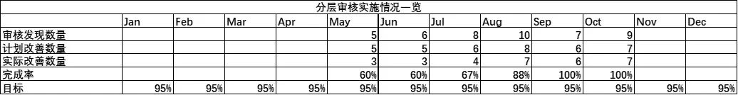 Tá ábhar na n -iniúchtaí próisis layered forleathan. Chun monatóireacht a dhéanamh ar éifeachtúlacht agus ar cháilíocht na n -iniúchtaí, taispeántar cur i bhfeidhm iarbhír an LPA ar bhealach cosúil le painéal. Áirítear leis an ábhar a thaispeántar: an ráta críochnaithe cur chun feidhme, líon na dtorthaí iniúchta, ráta críochnaithe na bhfeabhsuithe, etc.