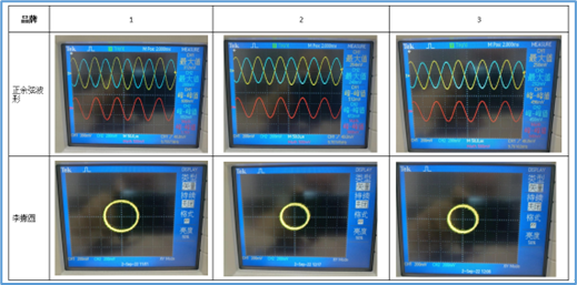 Faoi na coinníollacha céanna, déantar tástáil ar aimplitiúid tonnchruth, luach tonnchruth buaic-go-buaic, agus réimse figiúr Lissajous d'ionchódóirí ó bhrandaí éagsúla chun comparáid chainníochtúil a dhéanamh ar fheidhmíocht frith-chur isteach agus réiteach comhartha na n-ionchódóirí.