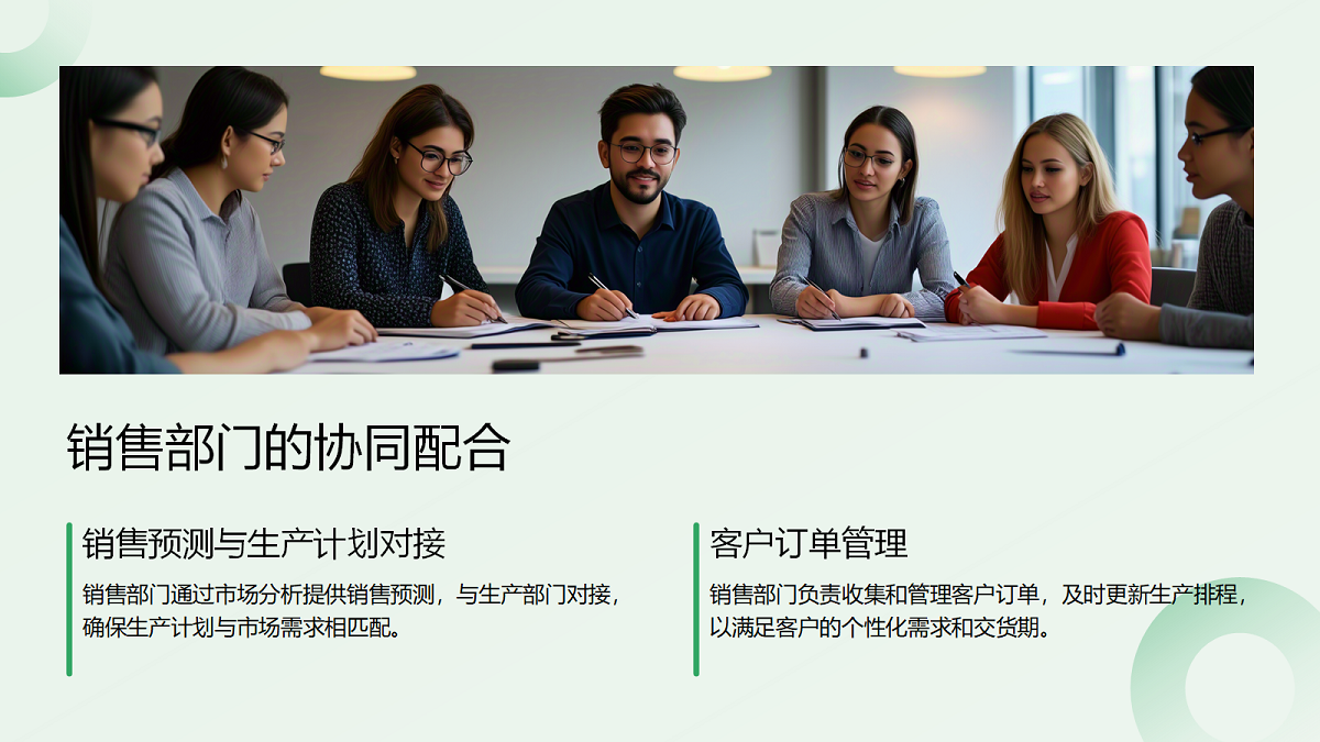Is pointe tosaigh an tslabhra iomláin é socrú ordaithe ag an roinn díolacháin, rud a fhágann go bhfuil réamhaisnéis chruinn éileamh ríthábhachtach. Briseann Nidec Elevator Motors bacainní idir-rannach agus glacann sé múnla bainistíochta "triantán iarainn", atá dírithe ar sheirbhís do chustaiméirí. Foirmíonn na ranna díolacháin agus margaíochta réamhphleananna SIOP (Díolachán, Fardal, agus Pleanáil Oibríochtaí) trí thaighde margaidh, anailís sonraí, agus modhanna eile. Idir an dá linn, eagraíonn an roinn pleanála cruinnithe SIOP míosúla a bhaineann le díolacháin, innealtóireacht, táirgeadh, soláthar, cáilíocht, agus ranna eile chun athbhreithniú a dhéanamh ar éilimh an mhargaidh sa todhchaí, aghaidh a thabhairt ar an gcothromaíocht dhinimiciúil idir soláthar agus éileamh, cinntí eolasacha a dhéanamh roimh ré, fanacht chun tosaigh ar an margadh, agus riachtanais an mhargaidh a thuiscint go cruinn chun freagairtí tapa a chumasú ar orduithe a fháil.