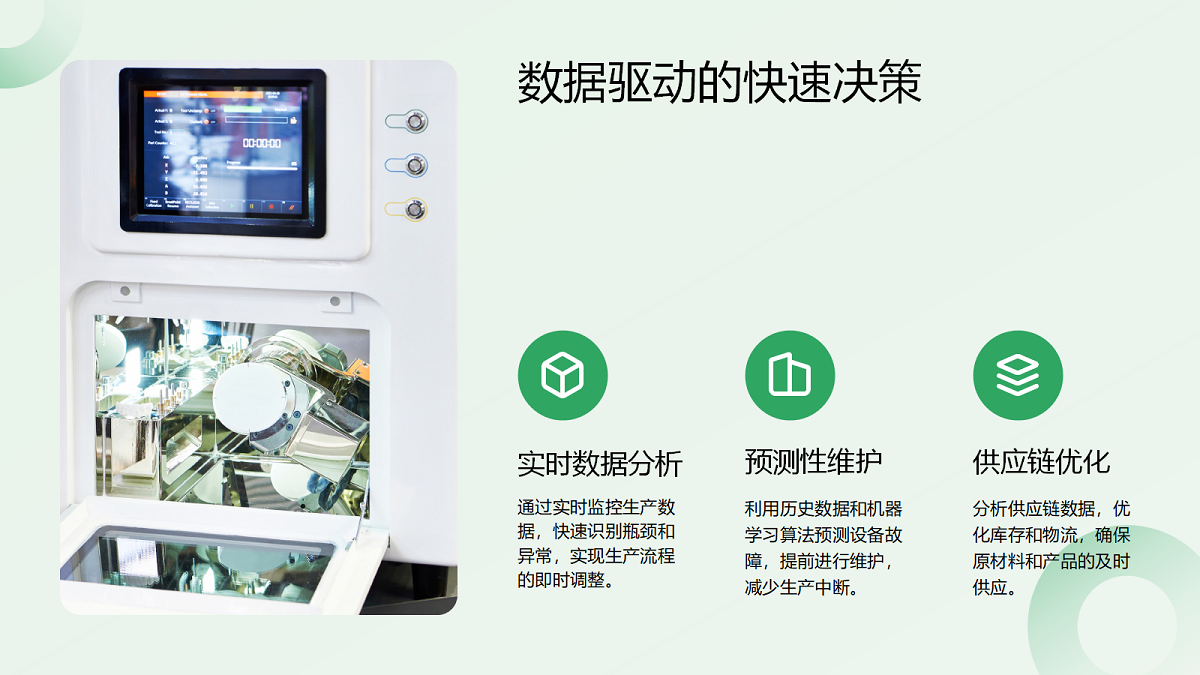 • Cinnteoireacht mhear-tiomáinte ag sonraí: Cinntí mearfhreagartha a dhéanamh trí anailís sonraí fíor-ama, cothabháil thuarthach, agus barrfheabhsú slabhra soláthair.