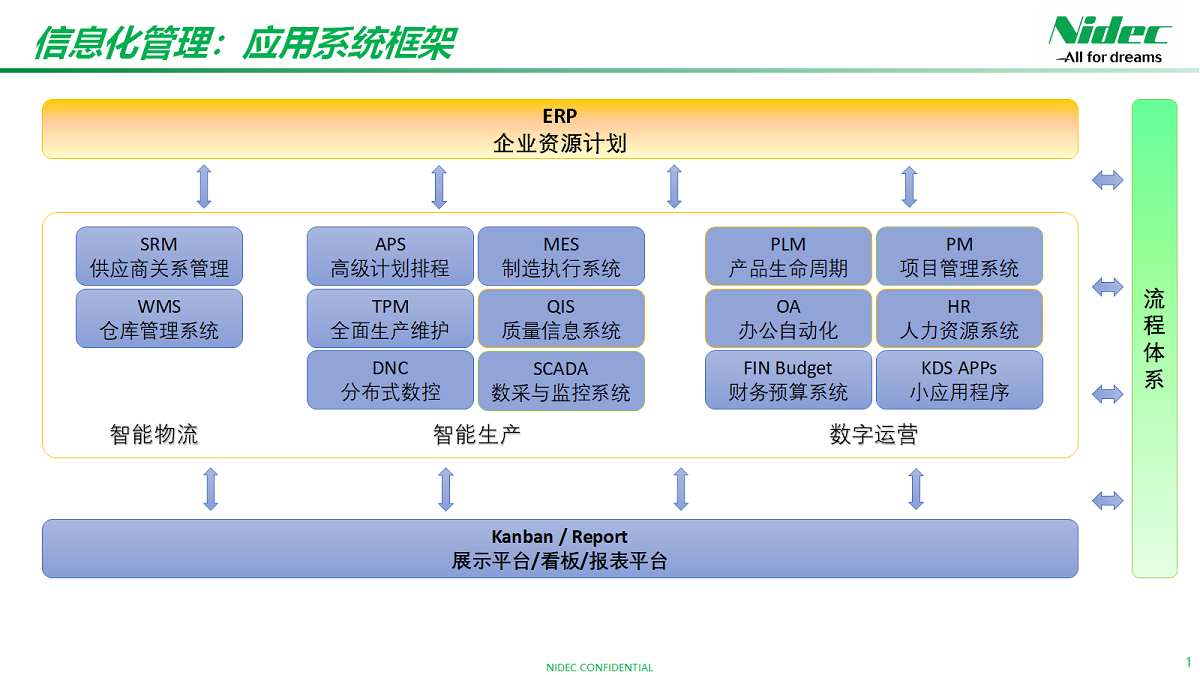 Tá córais forbartha go neamhspleách ag Nidec Elevator Motors mar SRM (Bainistíocht Caidrimh Soláthraí), MES (Córas Forghníomhaithe Déantúsaíochta), APS (Ardphleanáil agus Sceidealú), WMS (Córas Bainistíochta Stórais), agus TPM (Cothabháil Táirgiúil Iomlán). Tógann sé an córas táirgthe cliste ar fad trí uathoibriú, digitiú, samhaltú, léirshamhlú, comhtháthú, agus faisnéis, rud a chumasaíonn sceidealú táirgthe cothrom agus déantúsaíocht chliste solúbtha a réadú, agus leagann sé bonn láidir chun "monarcha teach solais" a réadú sa todhchaí.
